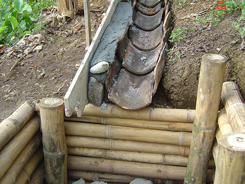 While bamboo is considered a symbol of poverty, a flush toilet is considered a symbol of progress. However, the farms are not connected to a sewage system, with expensive drinking water being used to flush the toilets and send the blackwater into the local creek. ZERI has introduced the toilet design of ecological architect Anders Nyquist of Sweden, a simple yet sophisticated device that respects nature's wisdom in keeping solids and liquids separate from each other. After about two years of curing the solids are used as valuable compost on the farmland. This toilet reduces the daily water needs on the farm from 100 liters/day to 10 liters/day, as 80 liters/day were used to flush.